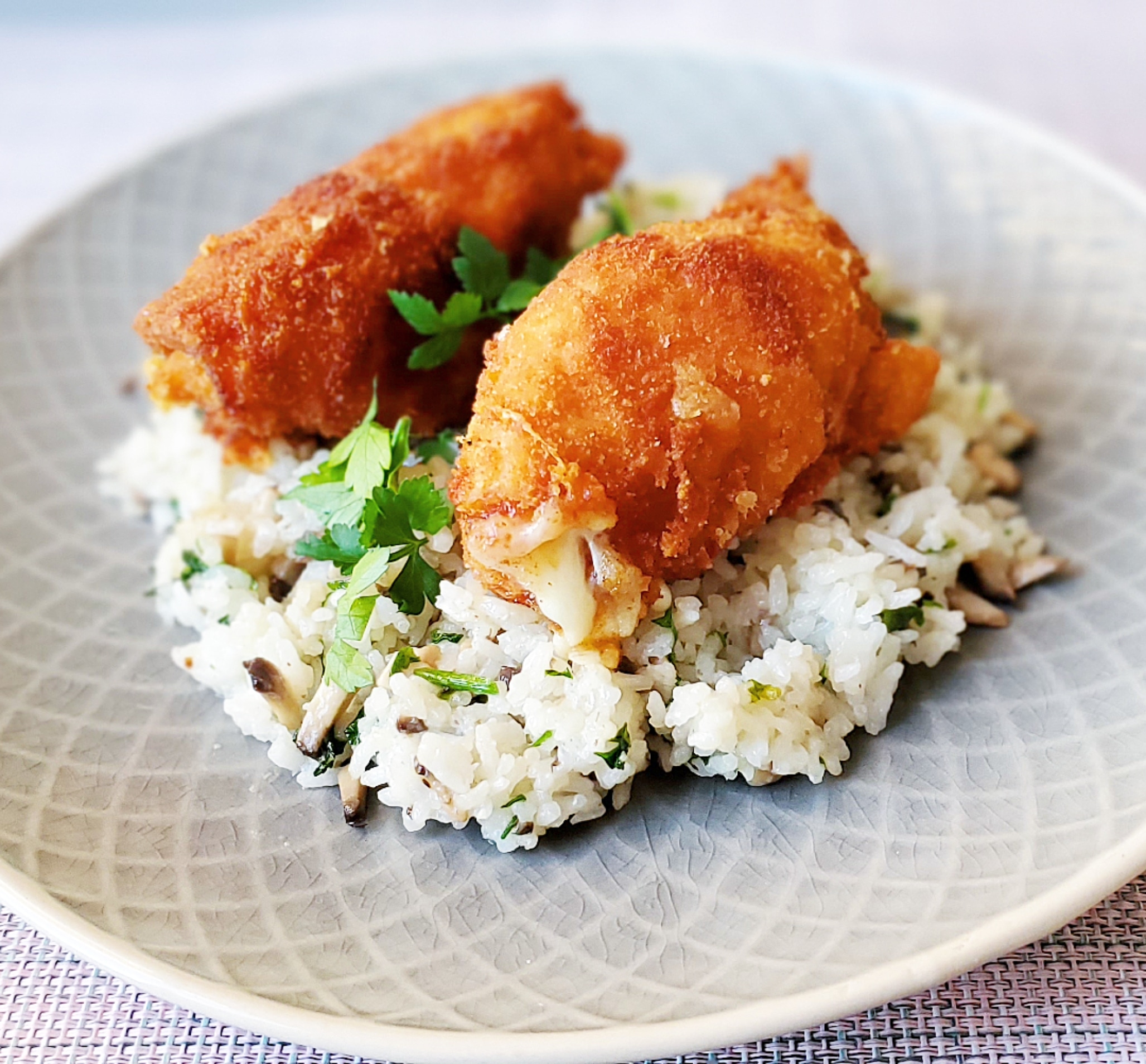Elsőként egy igazi klasszikus étellel kezdünk, amely sokunk kedvence! Ez a sajttal, sonkával töltött csirkemell rántva, melyet aranybarna panír borít kívülről, pankó morzsába forgatva pedig még ropogósabb lesz a végeredmény. Csirke cordon bleu-nek is hívhatnánk, ízben olyan, mint az eredeti, csak csirkemellfiléből készítettük. A sütésnél mindig kritikus pont, hogy szétesik-e a tekercsünk vagy szép a formája marad. Mi fogpiszkálóval is rögzítettük a tekercseket. Persze létezik más módszer is. Ha fóliát tekerünk szorosan a hús köré, a végét bekötjük, majd legalább fél órára a hűtőbe tesszük, megmarad a formánk, és nem nyílik szét a hús. Ezután panírozzuk csak be. Petrezselymes gombás jázmin rizzsel tálaltuk, melyhez 1 kilogrammos csomagolású Riceland jázmin rizst használtunk.